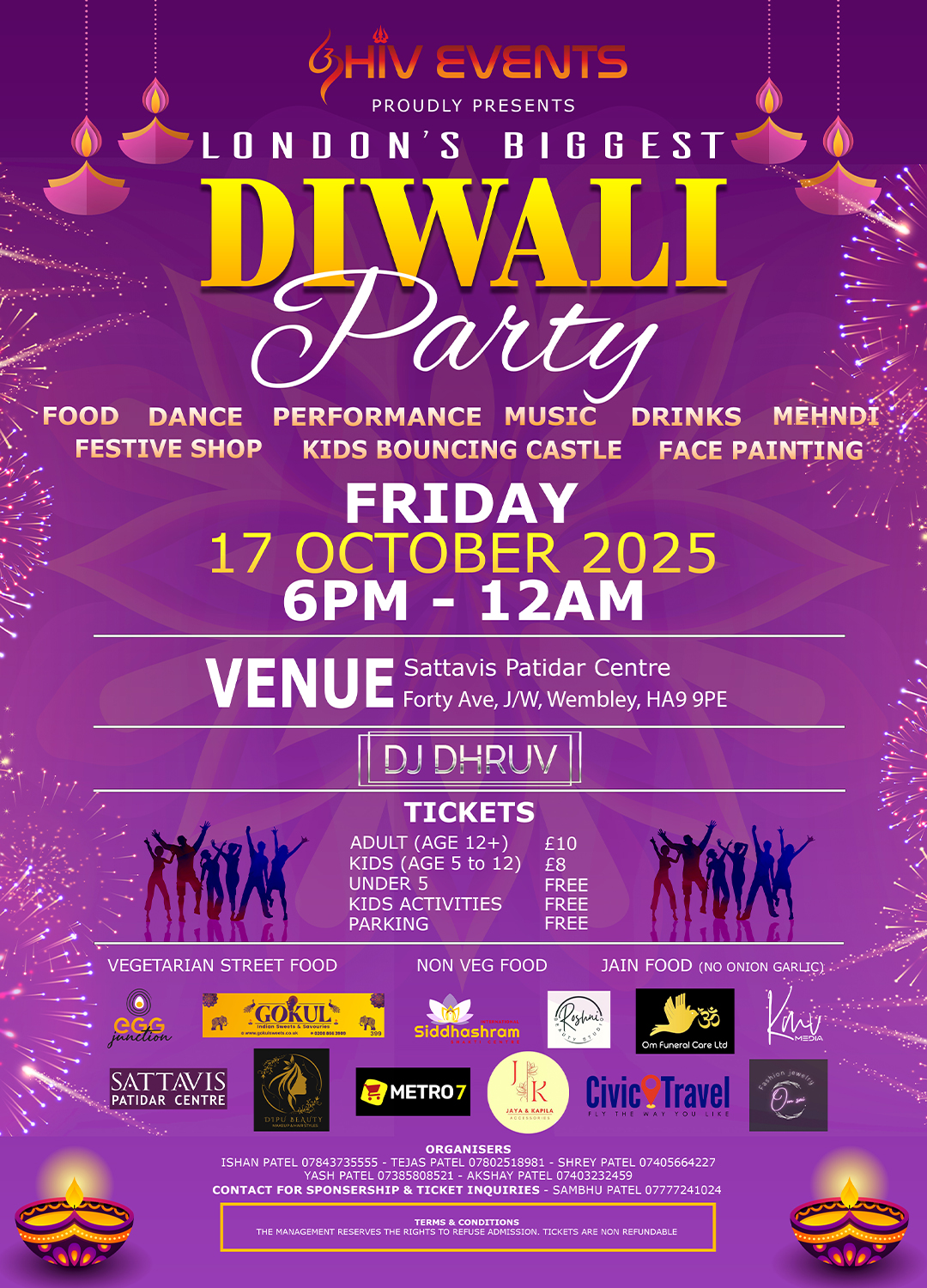 Come join us for a night of Bollywood music and dancing at the Sattavis Patidar Centre. Get ready to groove to the latest hits spun by our DJ DHRUV and celebrate the Festival of Lights in style!