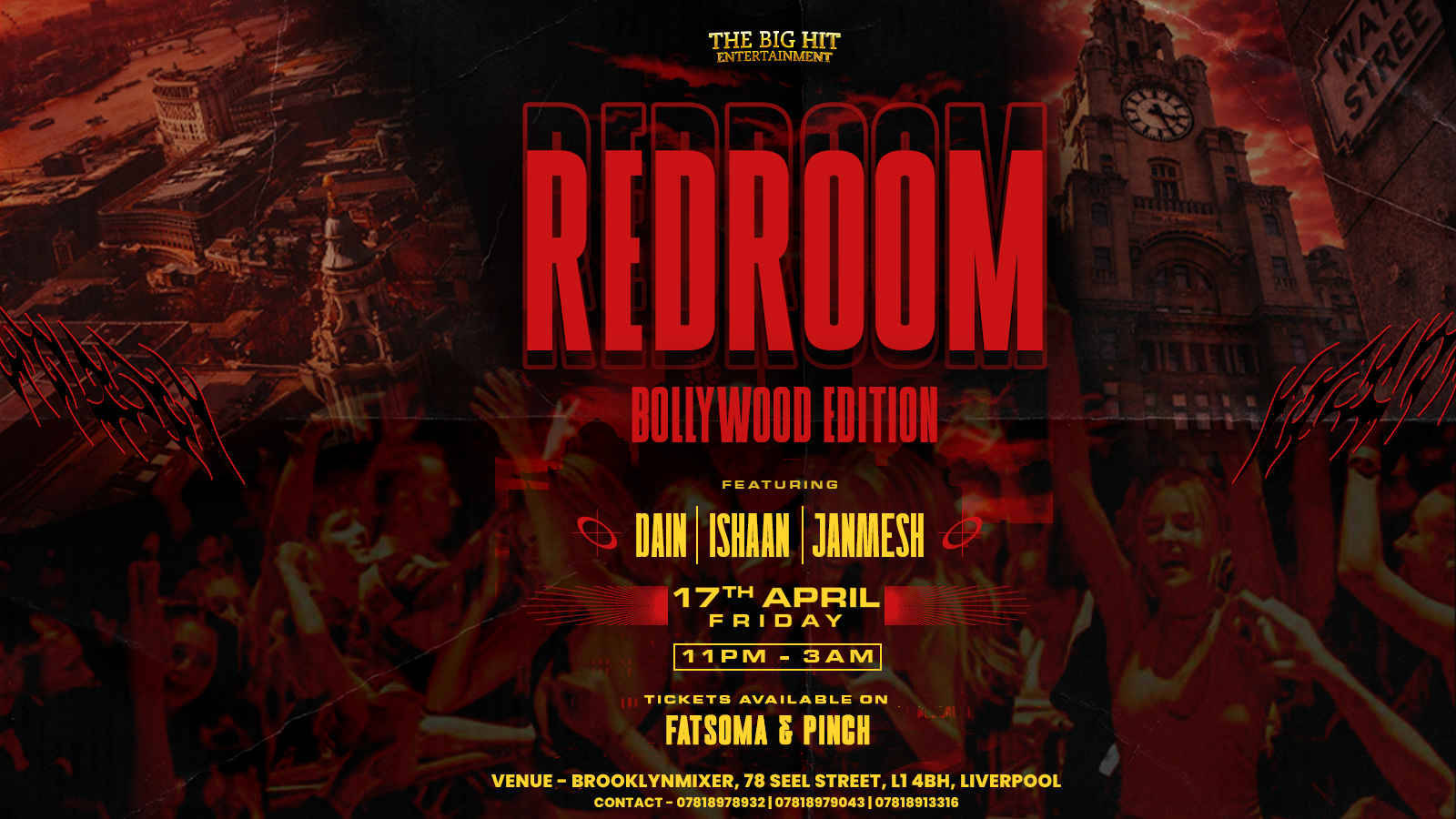 Step into a night where Bollywood meets the underground—REDROOM: Bollywood Edition is set to take over Liverpool with an electrifying fusion of desi beats and high-energy club vibes. Hosted by Big Hit Entertainment, this immersive party experience transforms the iconic Arts Club into a pulsating red-lit playground of music, dance, and pure adrenaline.