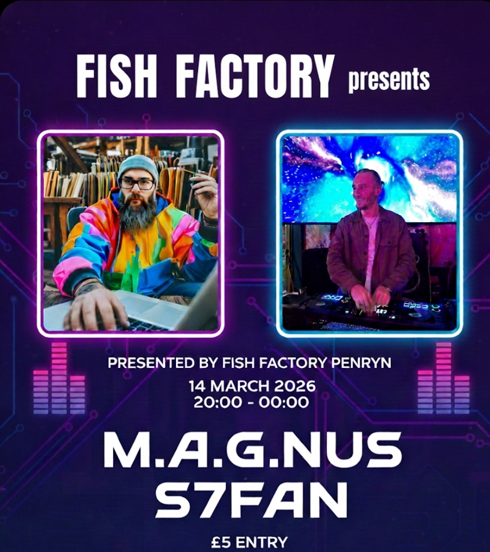 Get ready for an electrifying night as the Fish Factory Arts space is transformed by the sounds of two incredible DJs: M.A.G.N.U.S and S7FAN!
