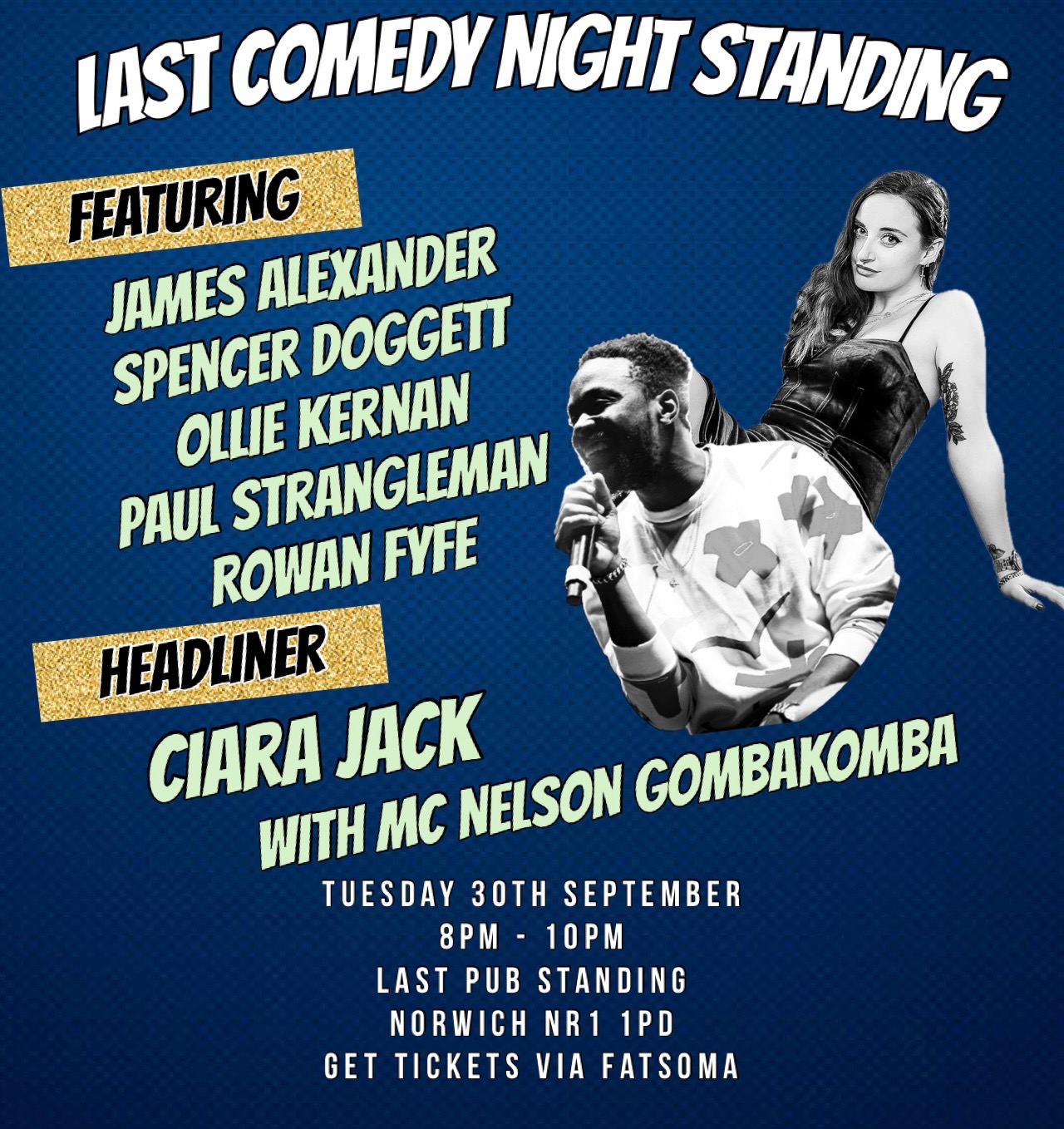 Join us for a hilarious Tuesday night at Last Pub Standing. It will be two hours filled with laughter as we showcase the best up and coming talent from the local comedy scene, hosted by Nelson Gombakomba with Ciara Jack headlining the show.
