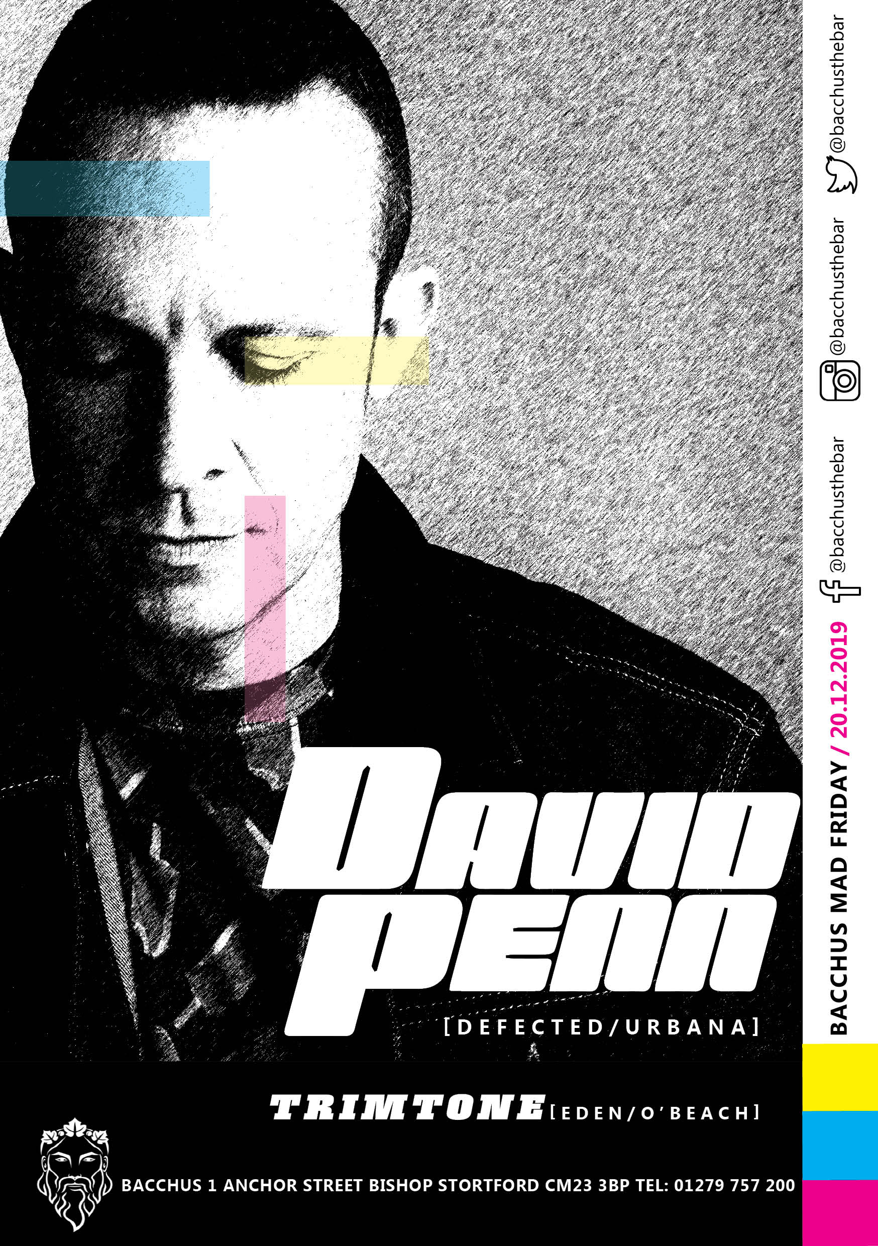 On the December 20th , Bacchus are proud to present Defected's own David Penn! He's currently the number 1 house artist on Traxsource and Beatport with over quarter of a million Spotify followers.