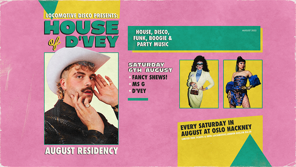 Every Saturday this August, we welcome D'vey and a pantheon of party starters on board our weekly disco train, so come correct and ready to sweat.