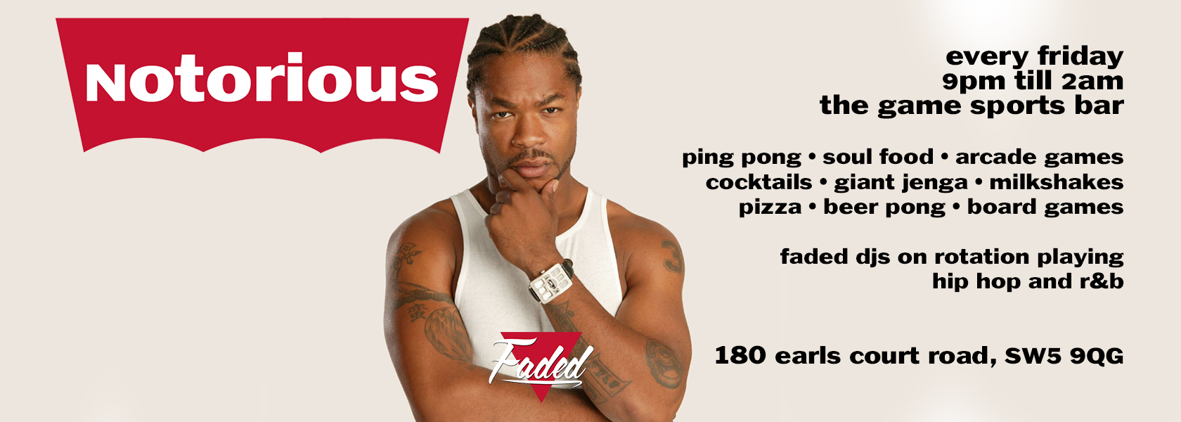 London's home of Hip Hop & RnB Faded have teamed up with The Game to create NOTORIOUS, a weekly party packed full of food & drink, fun & games and awesome music.