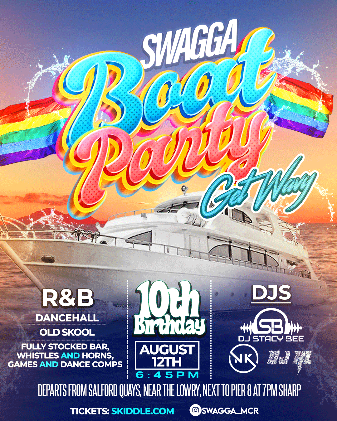 We have ramped up the energy for our 10th Birthday and taking you on our first Summer Swagga Boat Party ‘GET WAVY’ at Salford Quays.