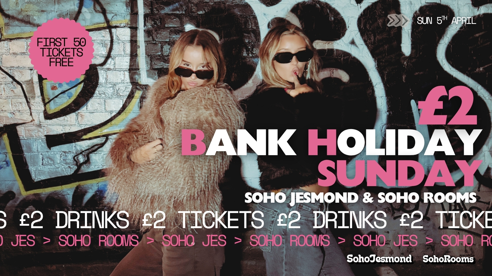 We’re taking everything you love about £2 Tuesdays and stretching it across a full Bank Holiday. Same energy, same chaos (the good kind), just starting earlier and finishing later.