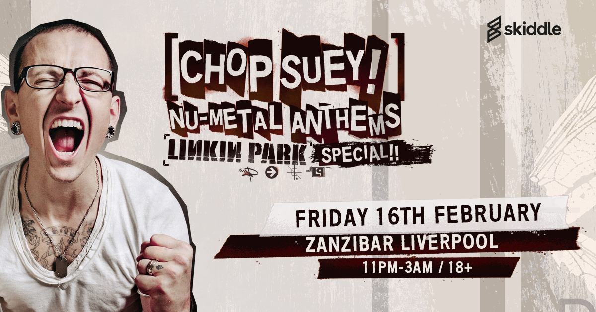 Chop Suey! Nu-Metal Anthems is coming to Zanzibar Liverpool for a massive nu-metal party! Linkin Park special!