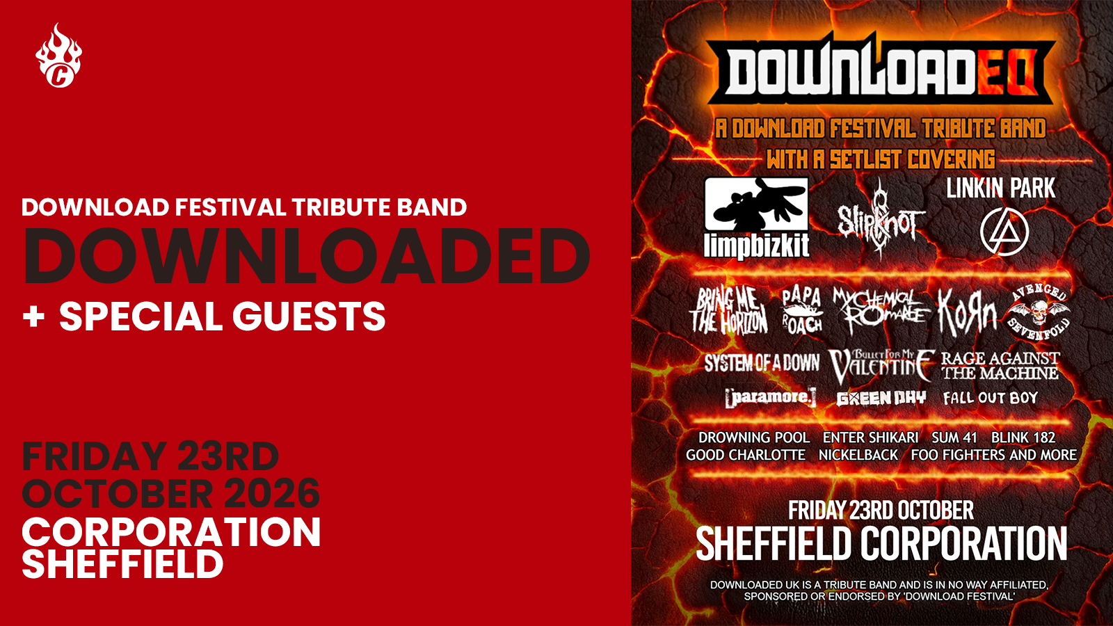 LOVE Download Festival?... but could do without the wellies. Downloaded could be the gig for you! ‘Downloaded’ is a high-energy tribute band celebrating Download Festival, with a setlist packed full of crowd favourite songs from the festival’s biggest acts. ‘Downloaded’ covers everything from Pop Punk to Nu Metal, from Green Day to Slipknot, and everything in between. Experience the rush of Download Festival without the tent, rain and muddy fields... see ya in the pit!