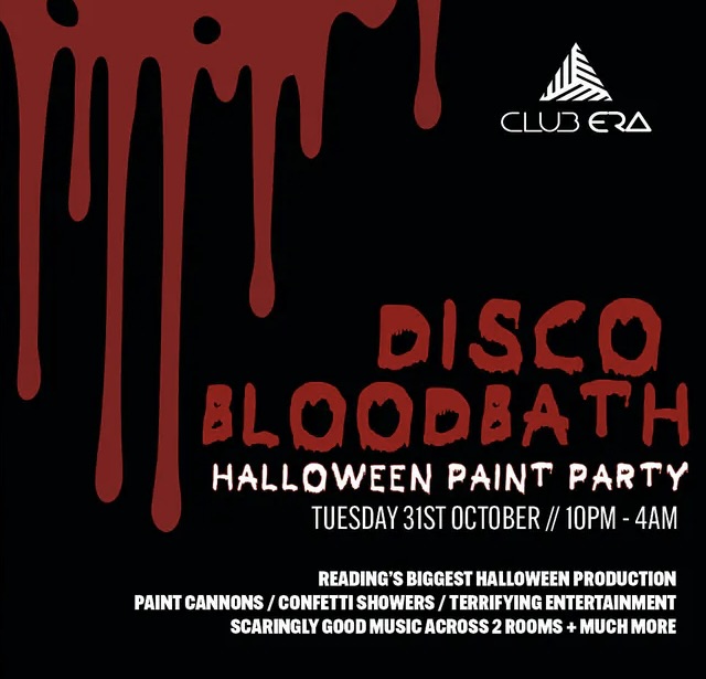 …And things are about to get real messy on Halloween night, 31st October, as Club Era will be pulling out all the stops with DISCO BLOODBATH, a HUGE HALLOWEEN PAINT PARTY! LET IT RAIN RED! With Paint Cannons, Confetti Showers, Vampire Fire Breathers and many more surprises, Be warned this event will not be for the faint-hearted.