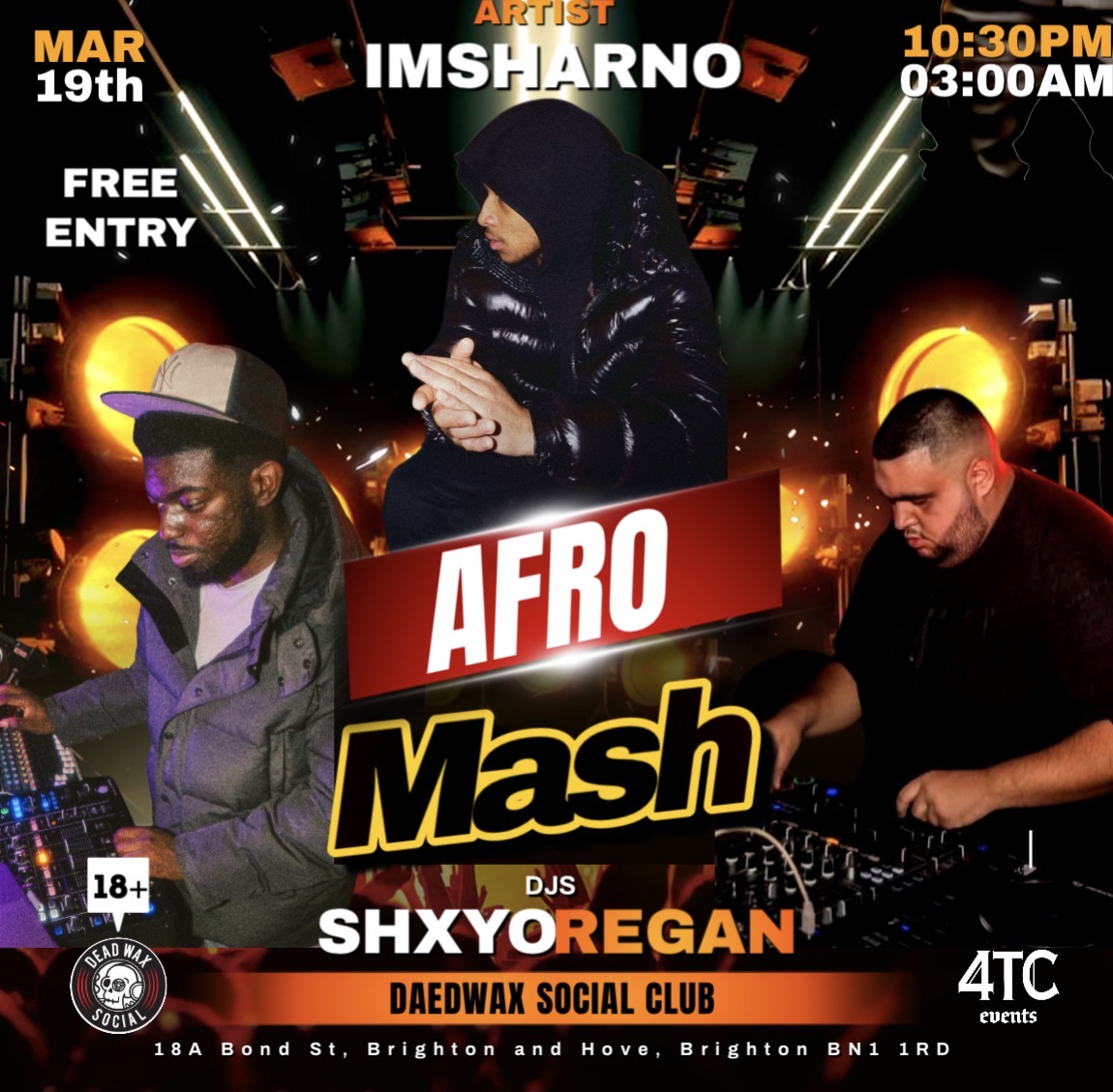 💃Afro Mash💃🕛 19th MAR | 10:30PM – 3AM📍 DEADWAX SOCIAL, BOND STREETHosted by 4TC Events 🎉🔥 Beats by | DJ Shxyo | REXREGAN💀 Limited Free TicketsIt’s gonna be lit, wild, and unforgettable…Don’t miss 4TC Events! 💥