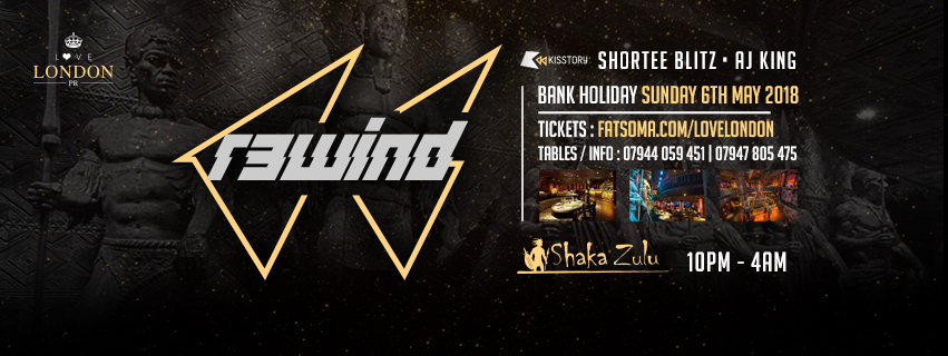 Join us this coming Bank Holiday Sunday 6th May for yet another unforgettable night, hosted by KISSTORY's very own SHORTEE BLITZ and AJ KING. Expect a whole host of surprises throughout the night, as we party away 'till 4 in the morning at London’s breathtaking and trendy Shaka Zulu Camden! Exclusive VIP, Birthday & early bird packages! Get in touch NOW!