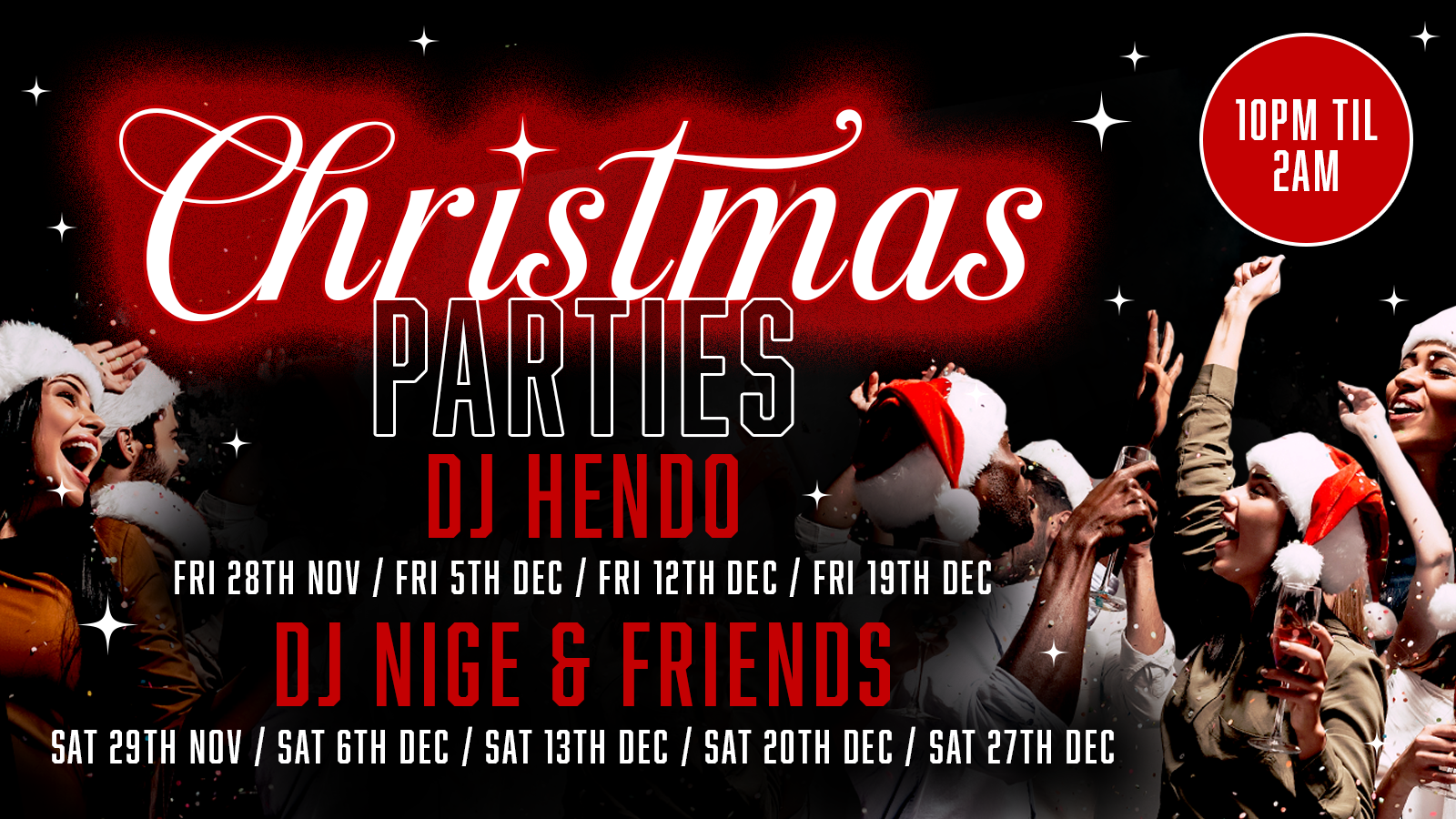 Join us for our legendary Christmas Party Nights, featuring the incredible DJ Hendo spinning all the best hits, festive anthems and floor-fillers to keep you moving until the early hours.
