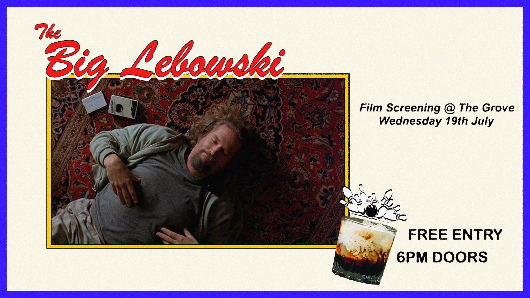 Don your best dressing gown and grab your bowling buddies. Join us at The Grove on July 19th for White Russians, wii bowling and a screening of the Coen Brothers classic; The Big Lebowski.
