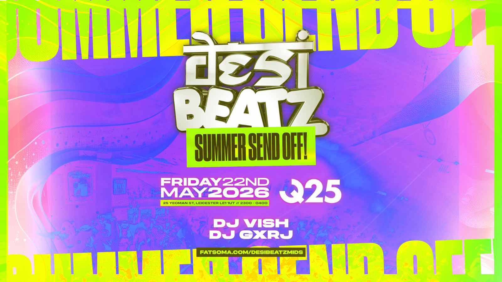 WE'RE BACK! Desi Beatz returns to Leicester for the Summer Send Off 2026 with the highly anticipated, legendary #SUMMERSENDOFF - delivering the biggest acts & the best venues consistently year after year, we have heard your demands to come and so HERE WE ARE! We are proud to continue the great tradition of celebrating South Asian culture for students attending University all over the U.K!