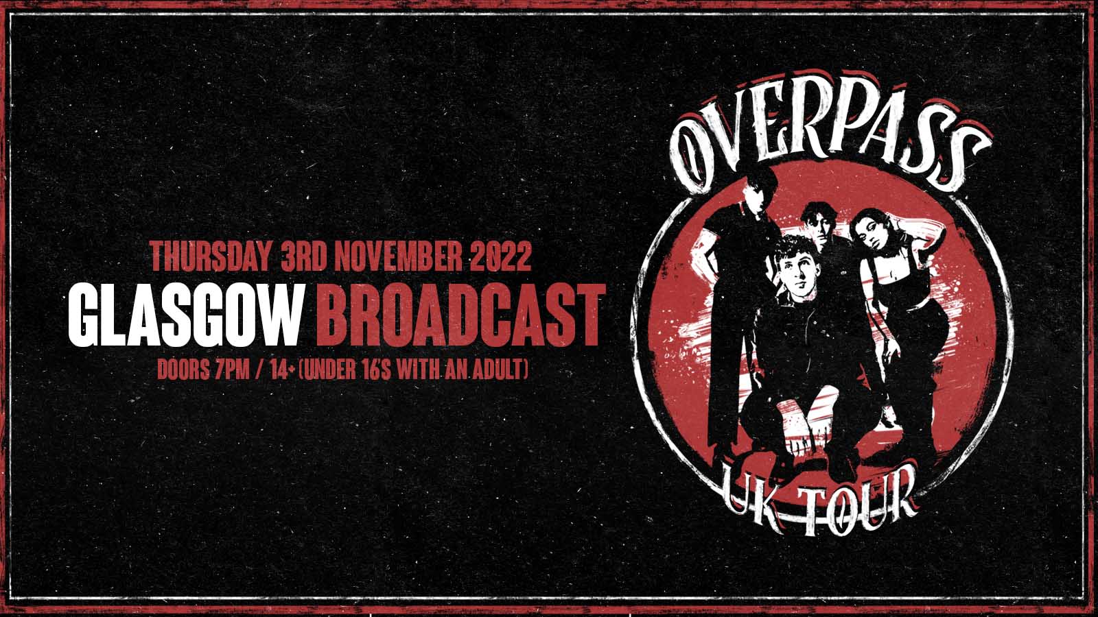 Overpass have built their fan base upon a steady stream of praised support slots, playing alongside bands such as The Wombats, The Fratellis and The Snuts. The band have garnered over 2M views across social media, making their singles highly anticipated releases. Tracks ‘Stop the Clock’ and ‘Changes’ have gained the band spots in Spotify’s ‘Fresh Finds:Rock’ and ‘Hot New Bands’ playlists, the latter receiving Radio X play.