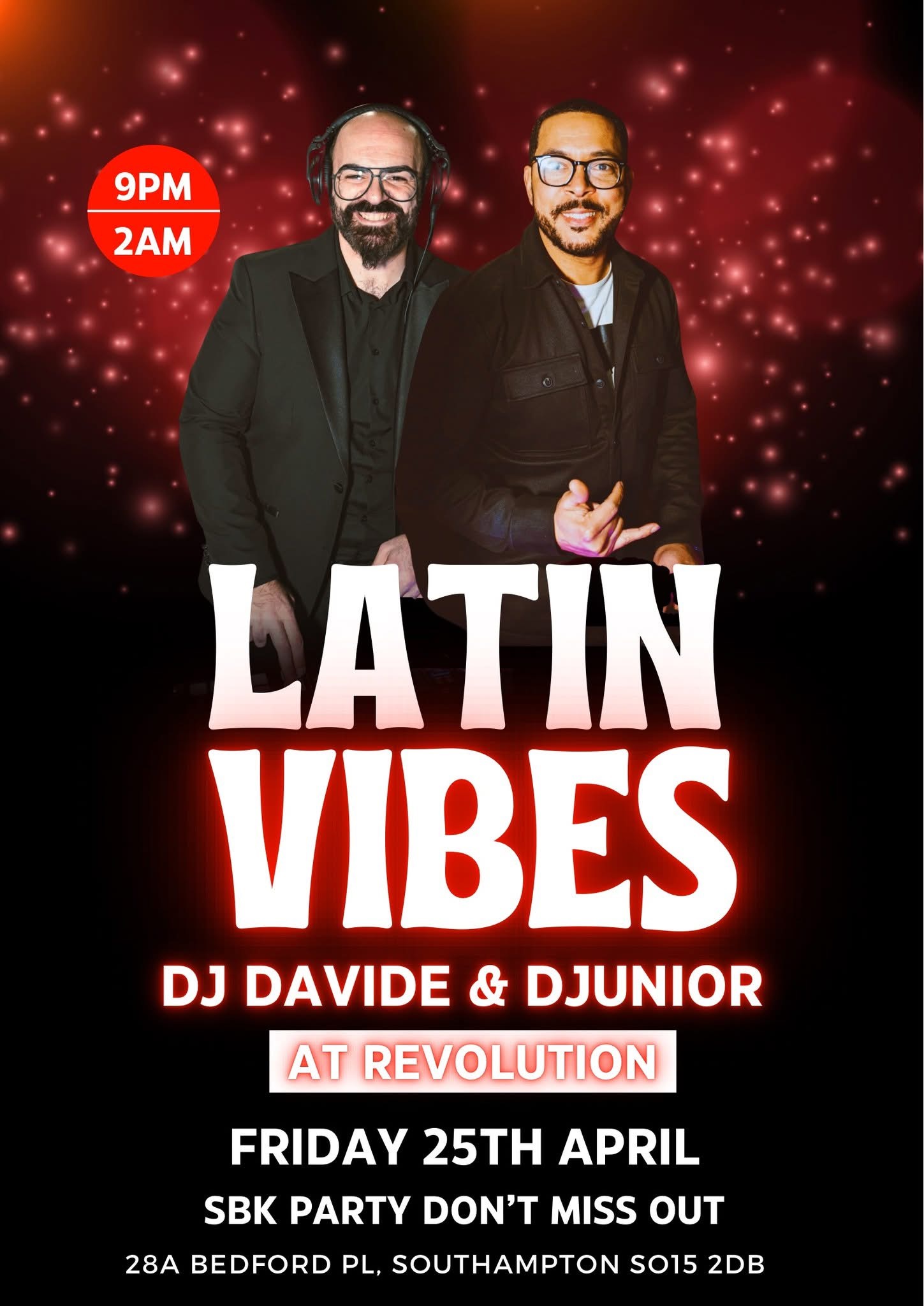 Djs Davide & Djunior with non-stop Salsa, Bachata, Kizomba. Get ready to party, get ready to have a great time!