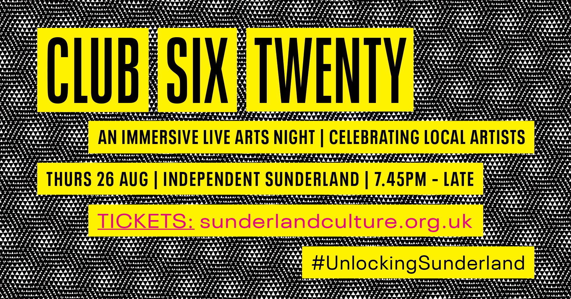 Club Six Twenty is created by The Six Twenty. This event is part of Unlocking The Doors, a programme of live performance across Sunderland commissioned by Sunderland Culture. Unlocking the Doors is supported using public funding by the National Lottery through Arts Council England.