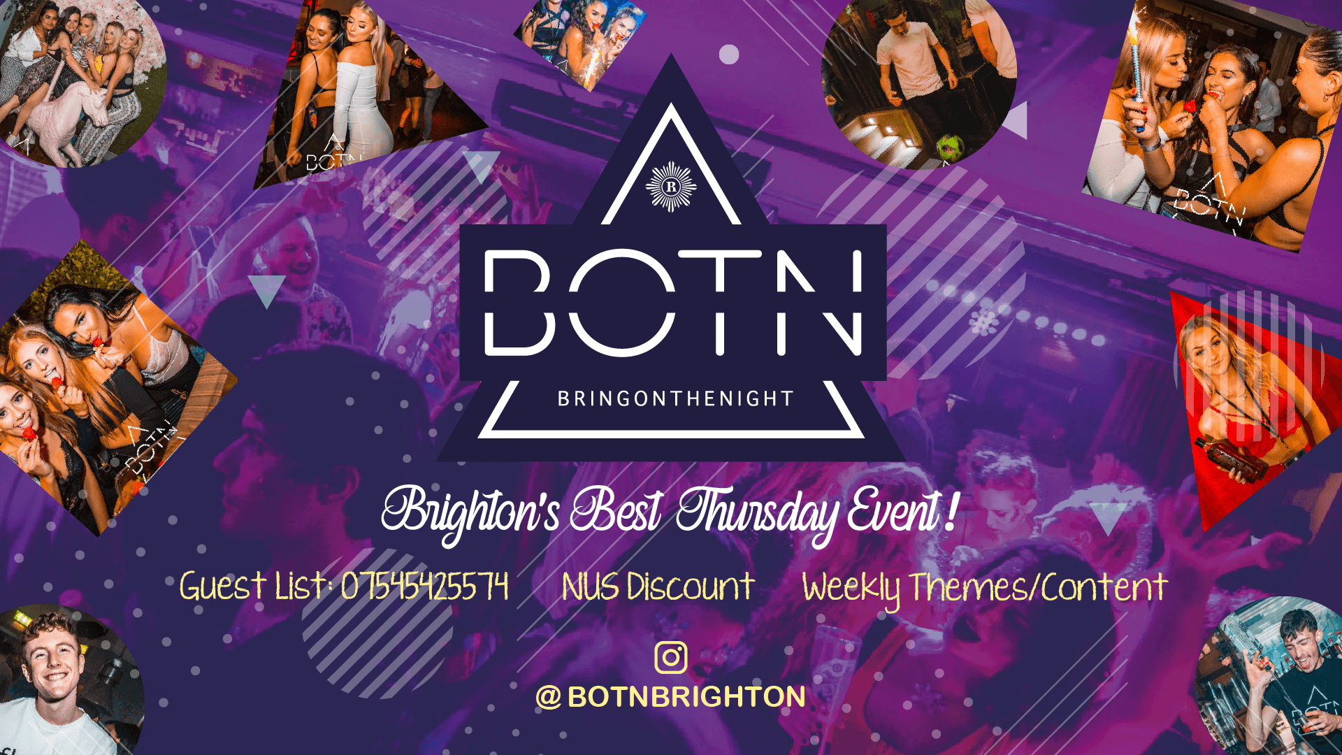 Welcome to Bring On The Night - Brighton's finest Thursday night party. Only for those that know how the best places to party. Suitable for students, young professionals, wedding parties and corporate bookings. Offering three areas, multiple bars, a fantastic courtyard garden, an array of drinks promotions and weekly content & giveaways BOTN cannot be beaten.
