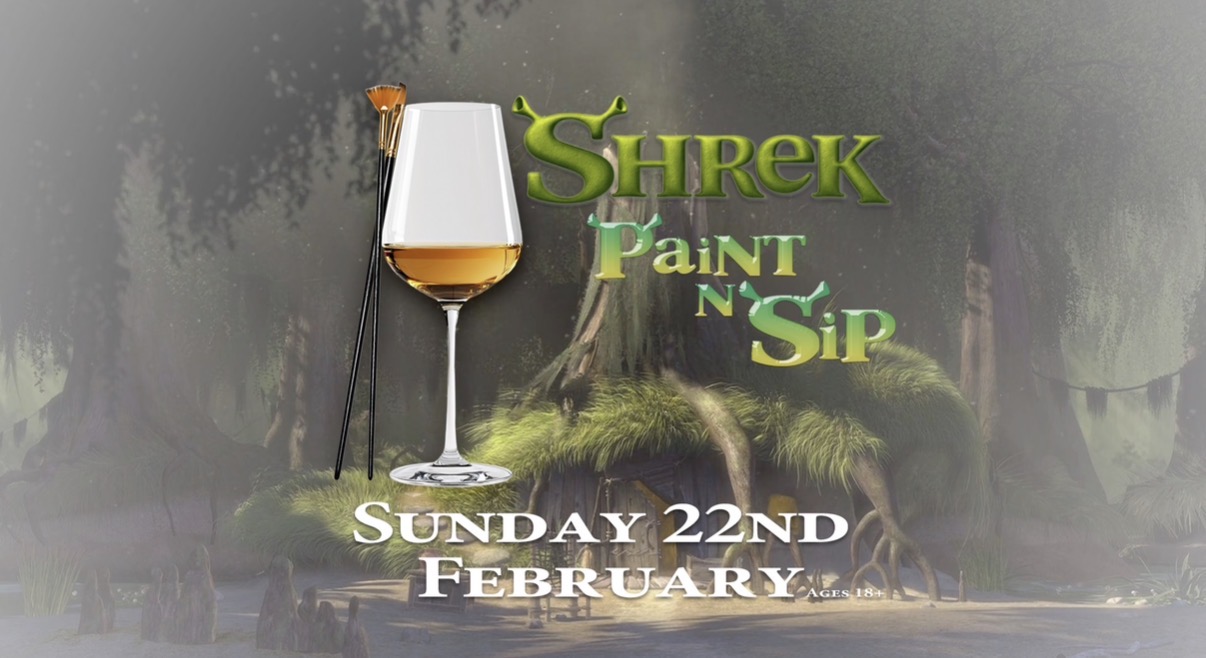 Get ready for a fairytale night with a swampy twist! Join us for Shrek: Paint N’ Sip, an unforgettable evening of painting, laughs, and sipping your favourite drink while bringing your own Shrek-inspired masterpiece to life.