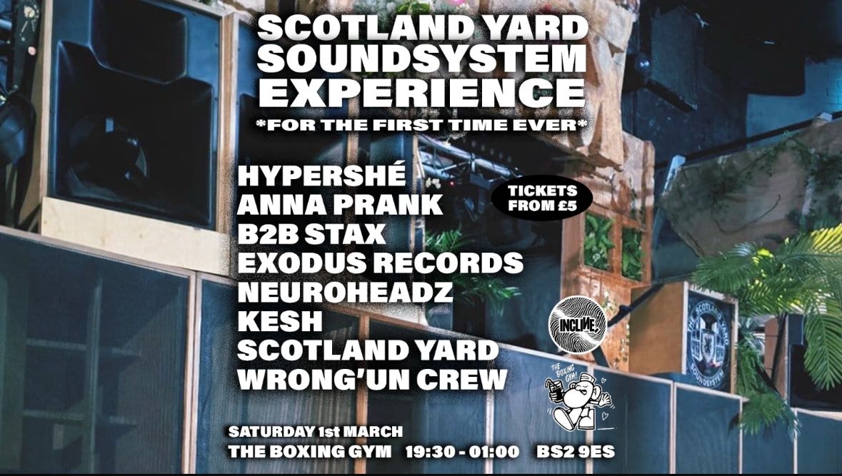 For the FIRST TIME EVER, Scotland Yard will be showcasing their fully stacked rig in the main room at The Boxing Gym and we have invited some special friends to come and insure you are left as a puddle of skin after they have finished their sets!