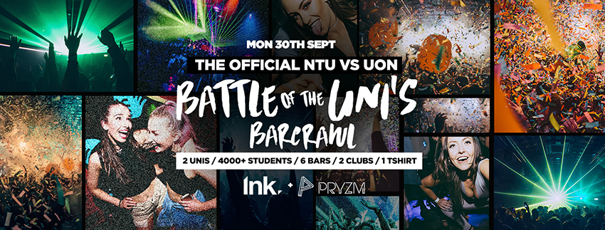 This is where each Uni parades their true colours as we discover what Uni owns the streets of Notts! Who parties the hardest? Who is the last on the Dancefloor? Who will claim themselves as rightful winners of the Battle of the Unis Barcrawl 2019?
