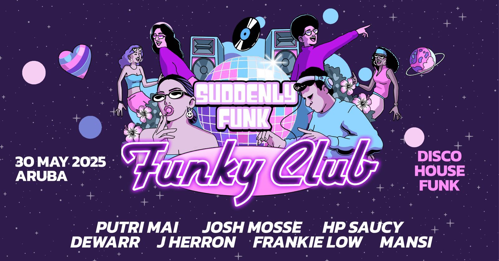 Suddenly Funk returns to Aruba on Friday 30th May for an unmissable night on the beach. Join 100's of funkers and party under the disco ball as our residents play the finest house, funk and nu-disco beats alongside all the BIGGEST disco classics 🔊