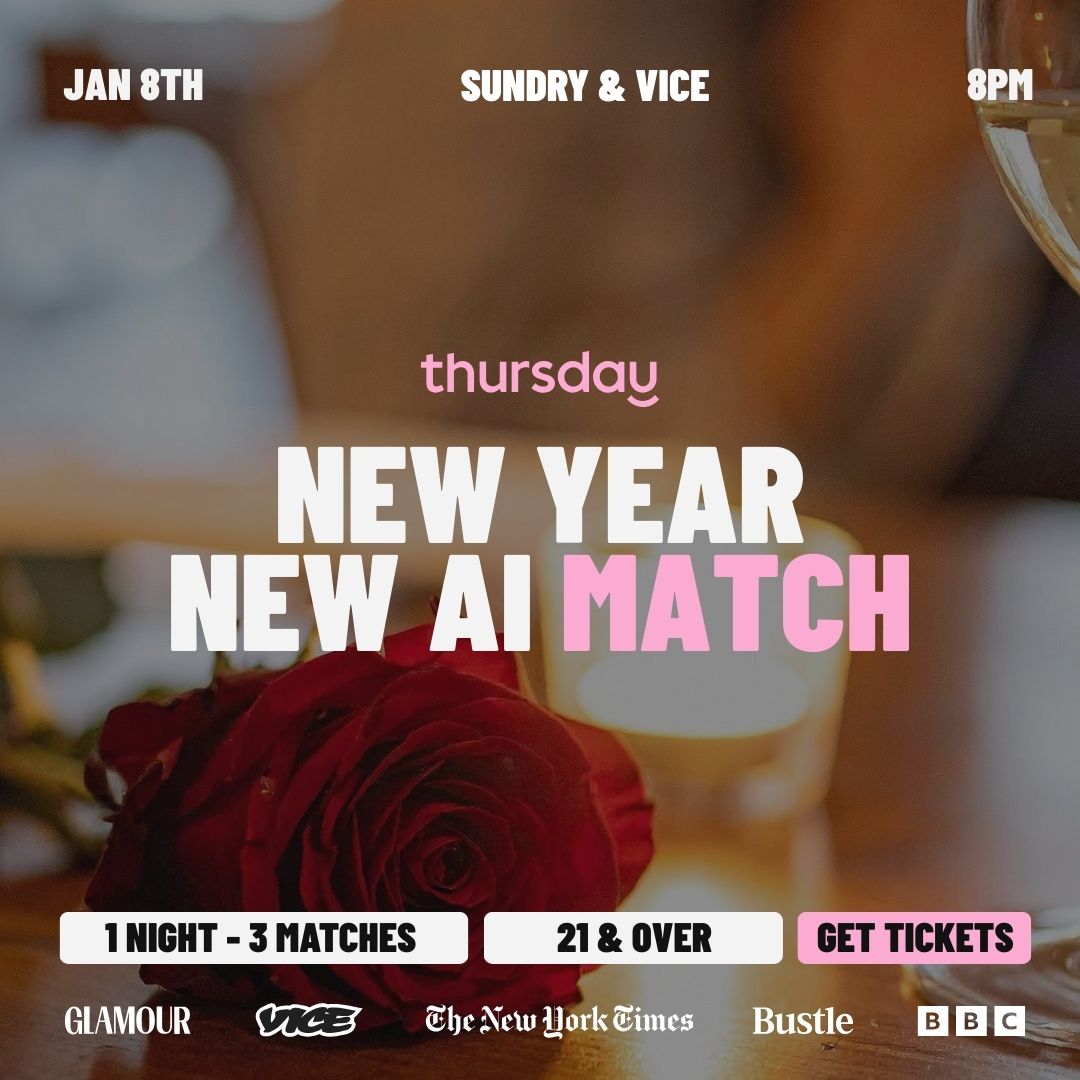 Step into the new year with a little mystery and a lot of potential. New Year, New AI Match invites you to take a short compatibility test and receive up to three AI-generated matches curated just for you. Your matches may not all be romantic, but that is the fun of it. Stay open, start conversations, and see where the night takes you. You never know who you might meet or what connection might surprise you.