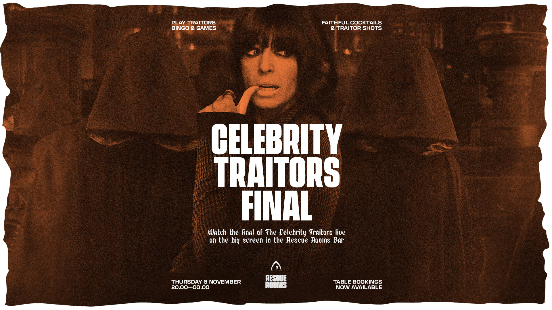 Join us for a watch party of series final of The Celebrity Traitors, live on the big screen in the Rescue Rooms Bar!