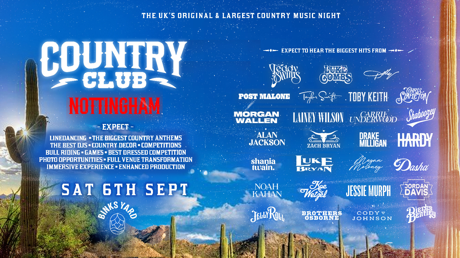 This is your chance to be part of the biggest country-inspired nightlife experience the UK has ever seen. Don’t wait—when tickets are gone, they’re gone. Round up your crew, grab your boots, and lock in your spot for a night that’s already creating FOMO across the country.