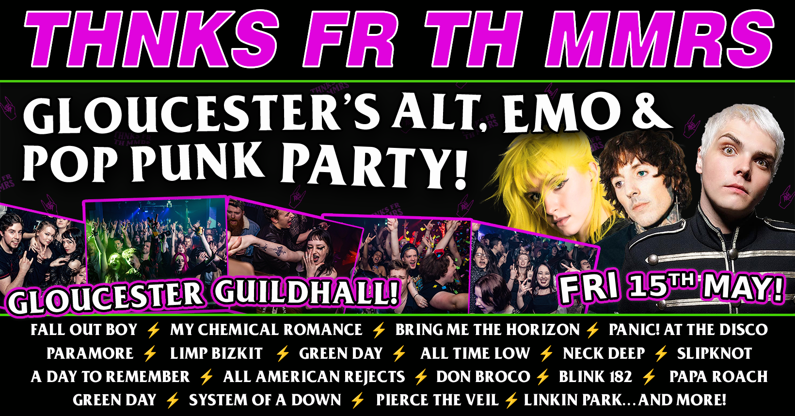 Fall Out Boy ⚡ My Chemical Romance ⚡ All American Rejects ⚡ Panic! At The Disco ⚡ Paramore ⚡ Sum 41⚡ All Time Low ⚡ 30 Second To Mars ⚡ Slipknot ⚡ A Day To Remember ⚡ Bring Me The Horizon ⚡ Don Broco ⚡ Blink 182 ⚡ Papa Roach ⚡ Limp Bizkit ⚡ Neck Deep ⚡ System Of A Down + a whole heap more