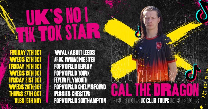 The UKs No.1 TikTok star CAL THE DRAGON visits FEVER PLYMOUTH on Friday 21st October as part of his UK Tour!