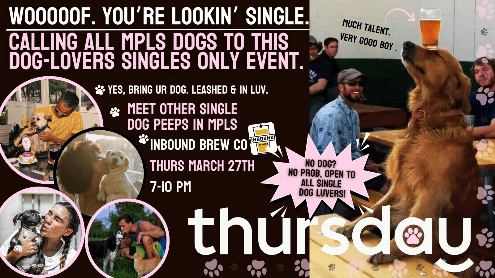 Join us for our SINGLES ONLY, dog meet up at Inbound Brew!