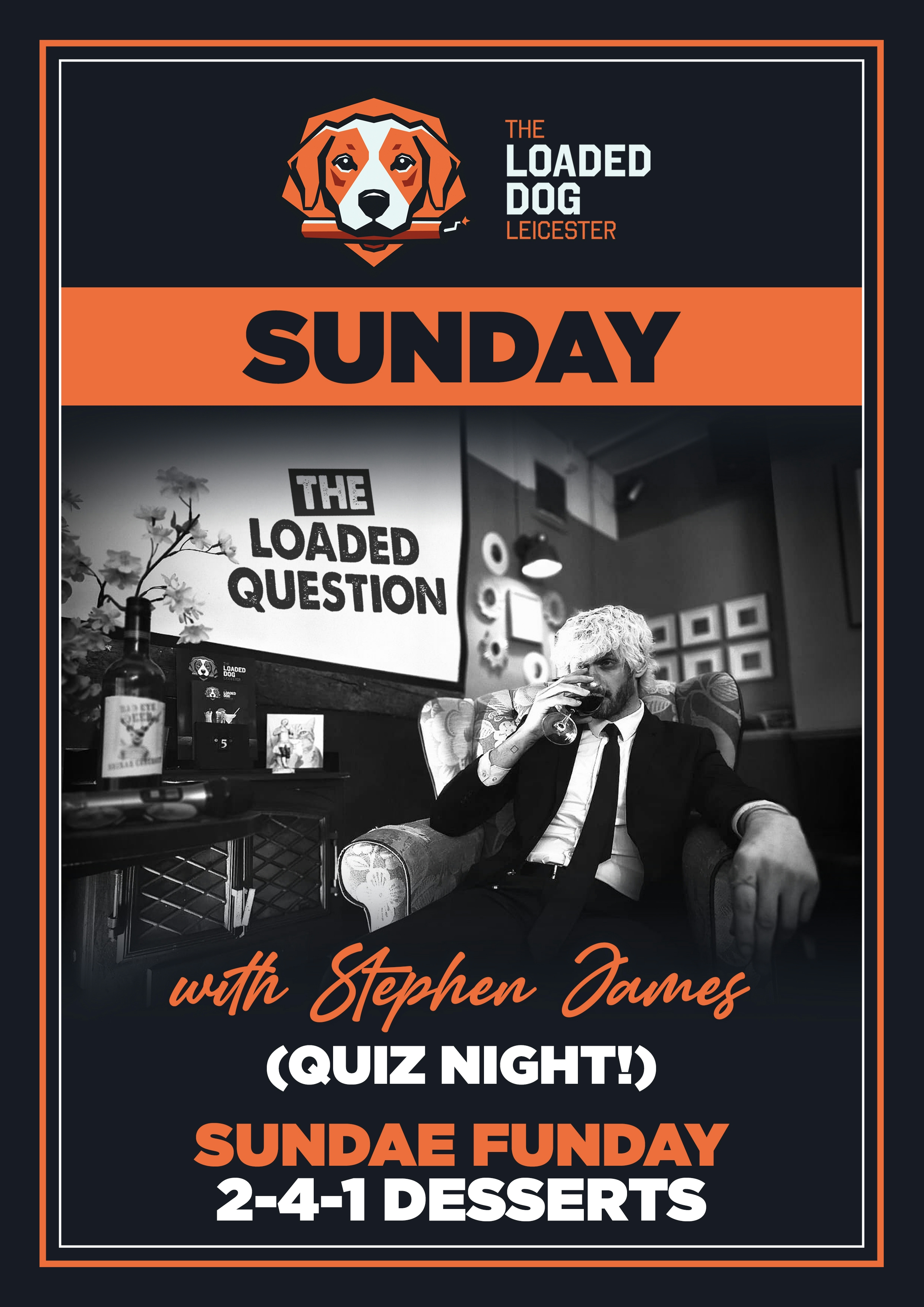 The Loaded Question is as loose and irreverent a quiz you will find in Leicester. Join Stephen for a fever dream of questions, sensuality, and satire, as you navigate a trench of both knowledge and depravity. There is no quiz like it. Seeing is believing.