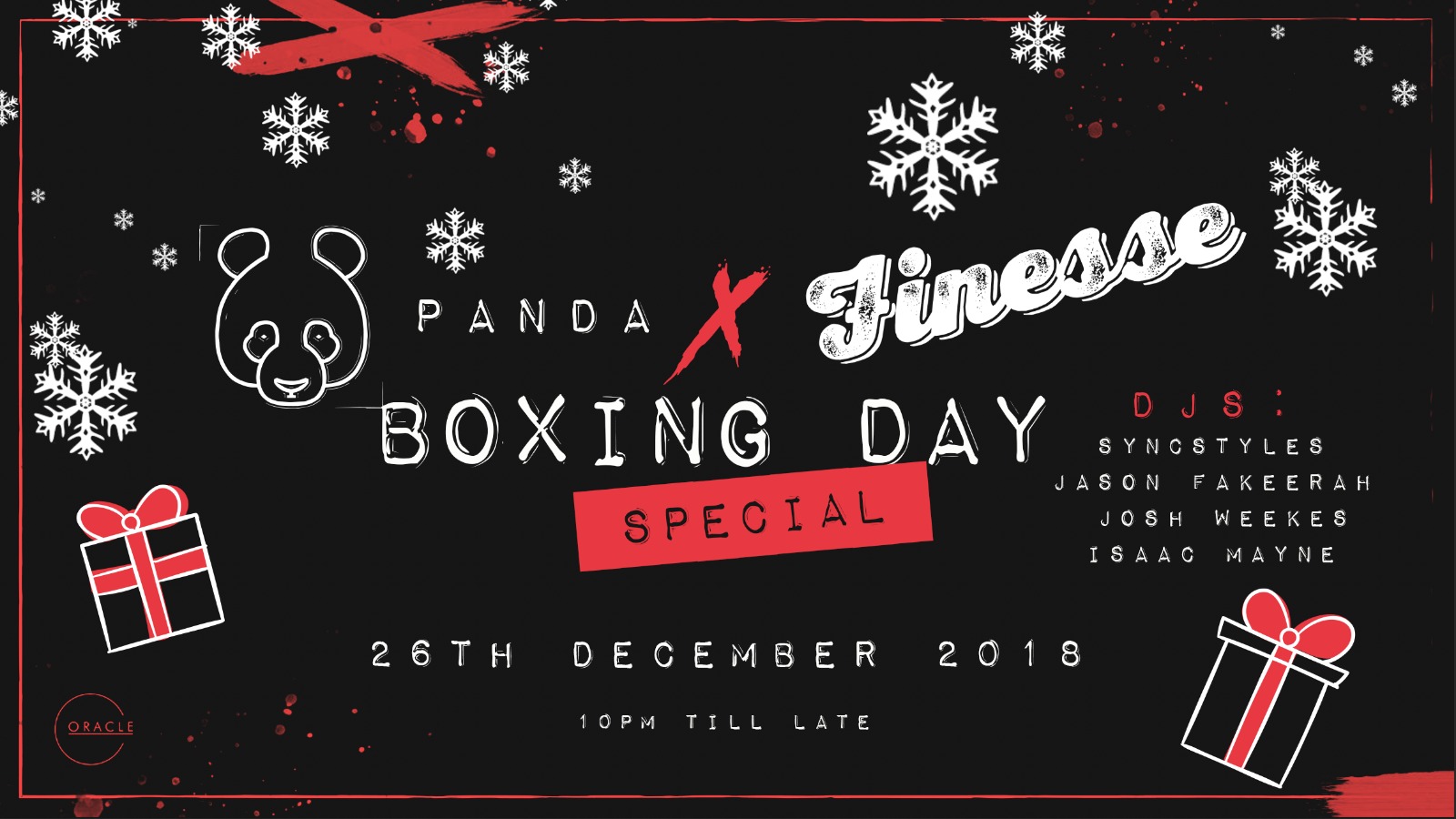 Panda and Finesse are joining forces for a very special Boxing Day event at Oracle!DJs on the night: