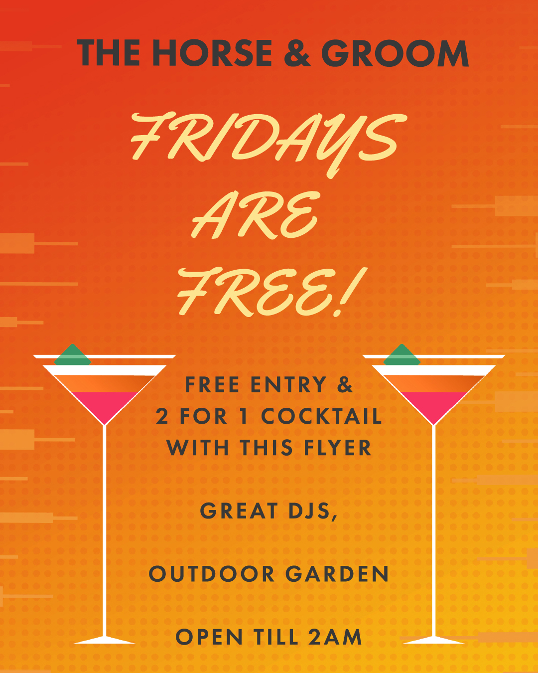 Every weekend the Friday late night sessions will be free entry for our summer season at the original disco pub the Horse and Groom with a great selection of residents, party crews and guest DJs bringing back the original party vibes music wise with selections disco, funk, soul, house, 90s grooves and beyond with the emphasis on great selections without the full-on rave!
