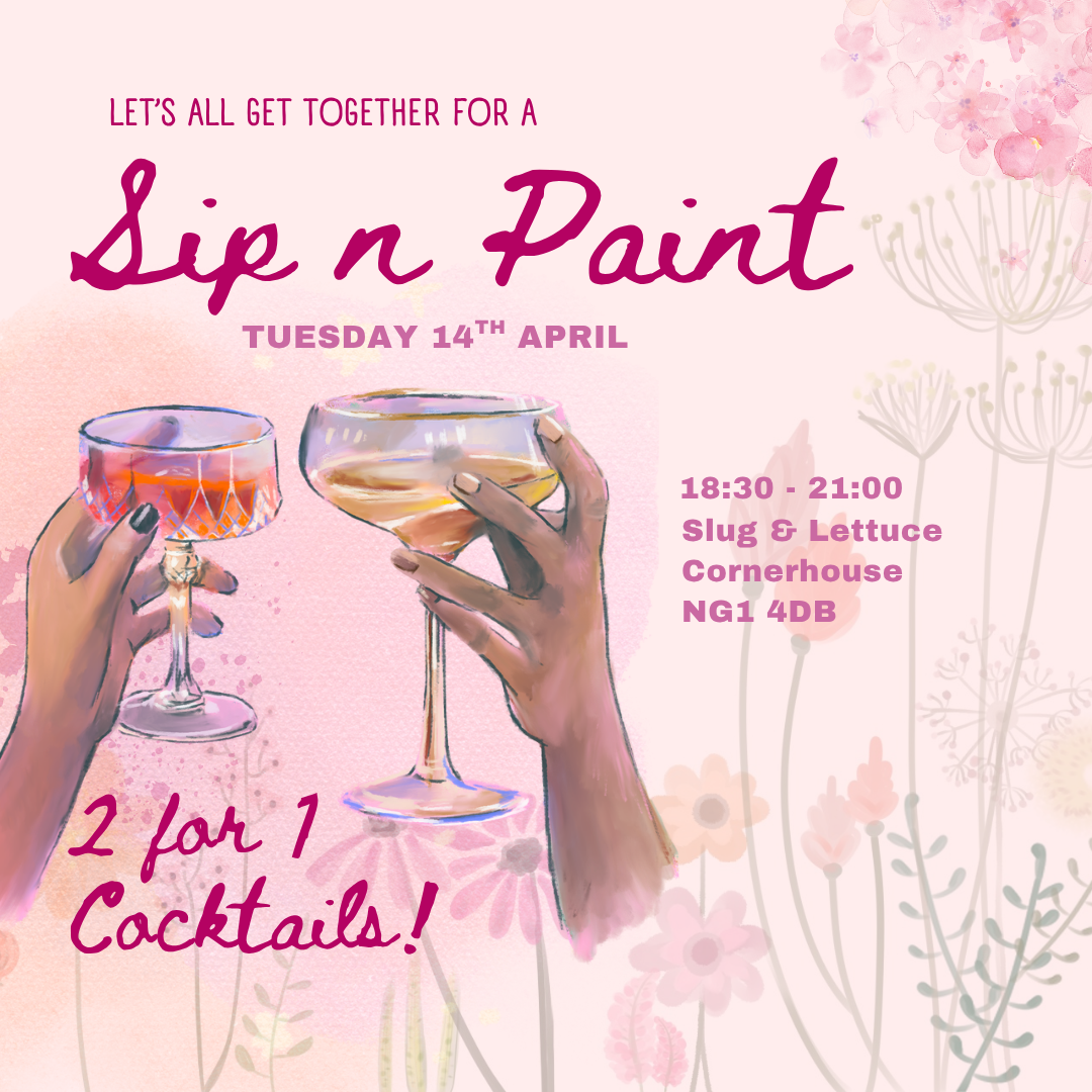 Join us for a laid‑back Sip & Paint with 2-4-1 cocktails where you can unwind, have a (cheap) drink, and get creative.