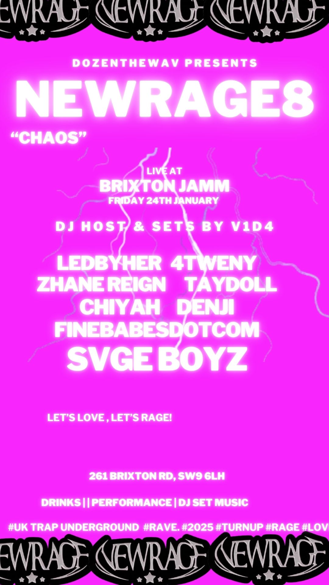 On January 24th, NEWRAGEFOREVER Returns with its 8th Event Series at our partner : Brixton Jamm , hosting an electrifying live event dedicated to the future of UK trap, R&B, and soul, showcasing emerging talents shaping the city's soundscape.
