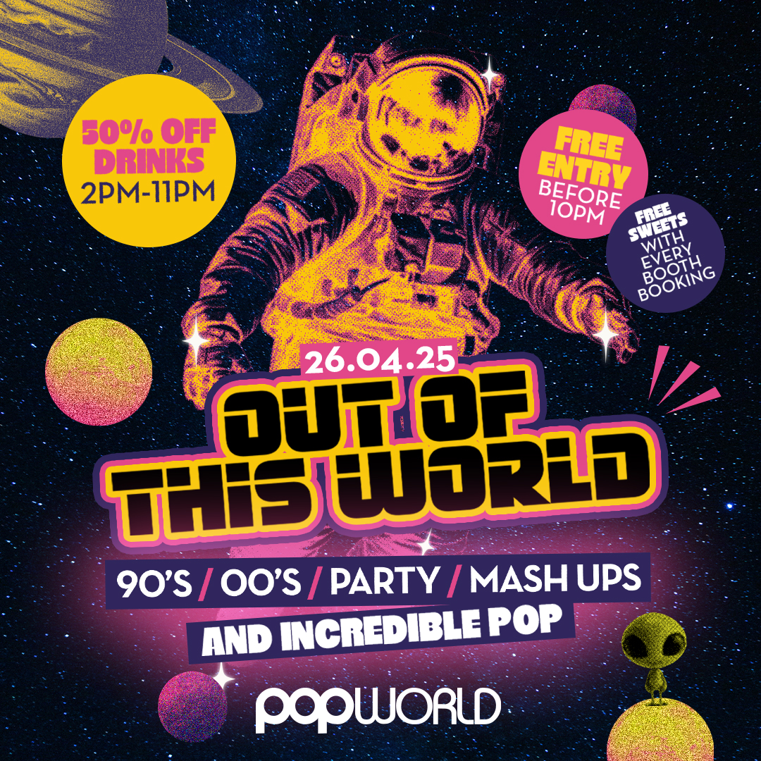 Get ready to travel beyond the stars for the most intergalactic party of the year! 🌌 Popworld Sheffield is hosting the Out of This World Party, and it’s going to be otherworldly in every way! ✨