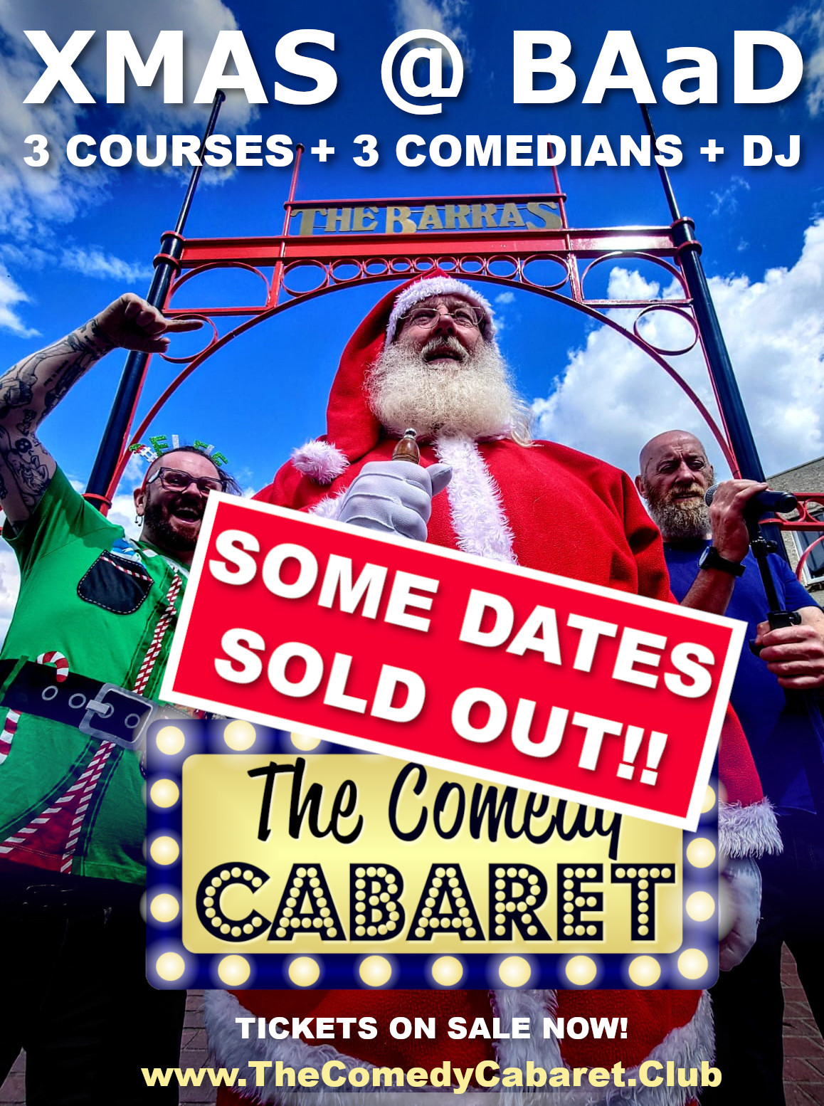 Seat for comedy show may be theatre-style or beerhall-style at mixed table.