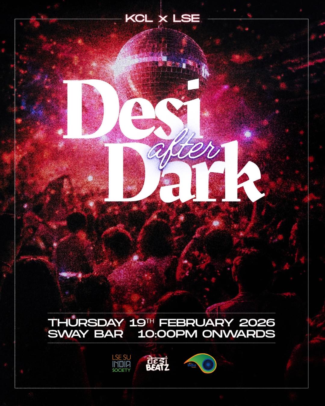 KCL India Society presents the third instalment of its very own club night : Desi After Dark- playing the best in Bollywood all night long - this is going to be an unforgettable night!