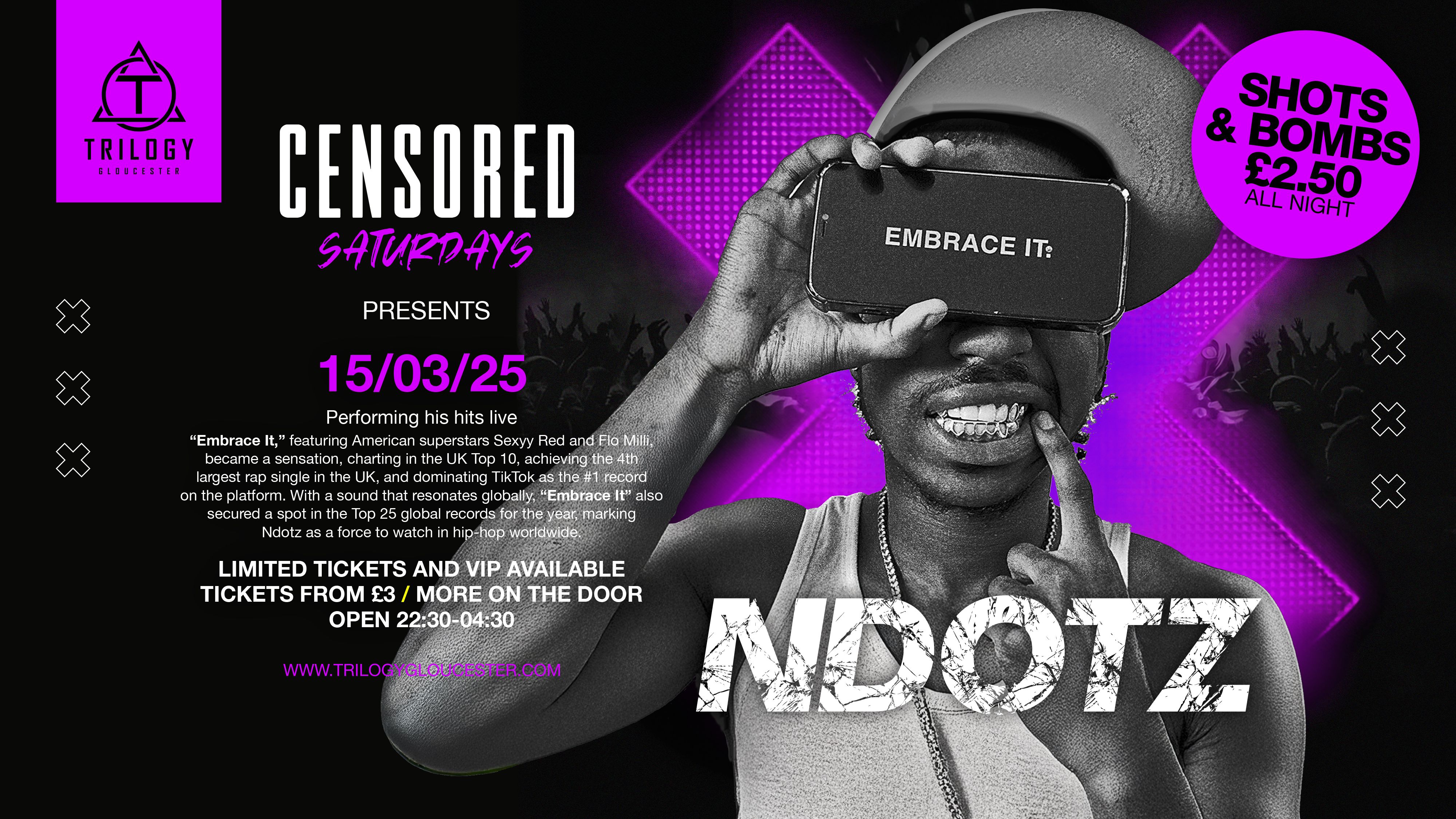 N Dotz, the artist behind the smash hit “Embrace It”, will be taking the stage on March 15th for an electrifying performance you won’t want to miss! He’ll be performing “Embrace It” and many more fan favorites.