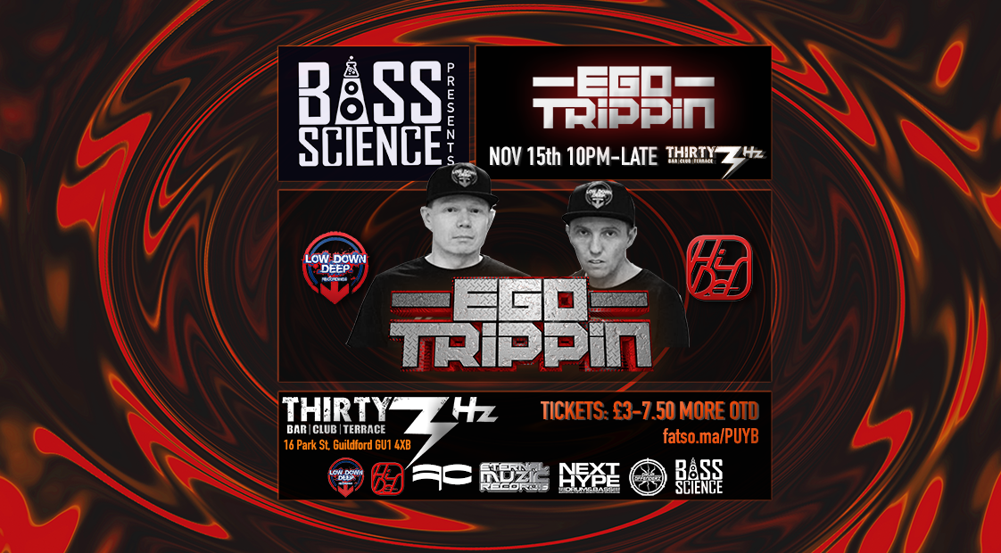 The Bass Science team returns to Thirty3Hz on November 15th bringing you the mighty Ego Trippin