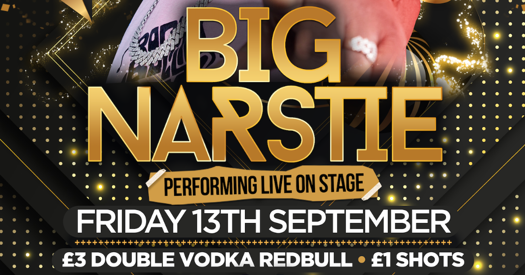 🚨BIG NARSTIE PERFORMING LIVE🚨🟢3 DOUBLE SPIRIT AND MIXER🟡£1 SHOTS🔴OPEN UNTIL 3AM