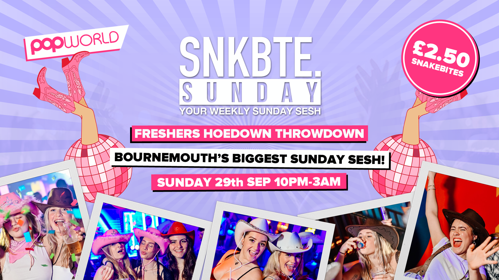 You guys requested it, so welcome to the FRESHERS wild west. Dust off your best pair of cow-print trousers, strap on those dancing boots and prepare to two step to the sounds of all your favourite country hits. But don't worry it's only for an hour so you can still pop it , lock it , polka dot it to our usual iconic Snakebite mix 🎶