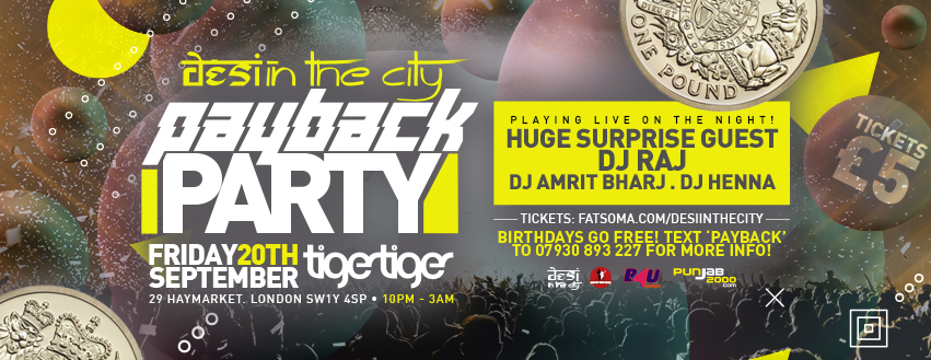 TICKETS AVAILABLE VIA www.fatsoma.com/DesiInTheCity