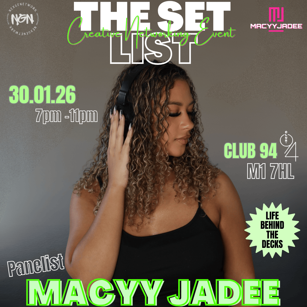 Step into the mix at a high-energy networking event built for creatives ready to level up. Learn the ins and outs of the DJ’ing industry from industry pro Macyy Jadee, then vibe out to live performances from some of the hottest UK talent making waves right now. Connect, create, and network with like-minded creatives in an atmosphere where music, knowledge, and culture collide. 🎧🔥