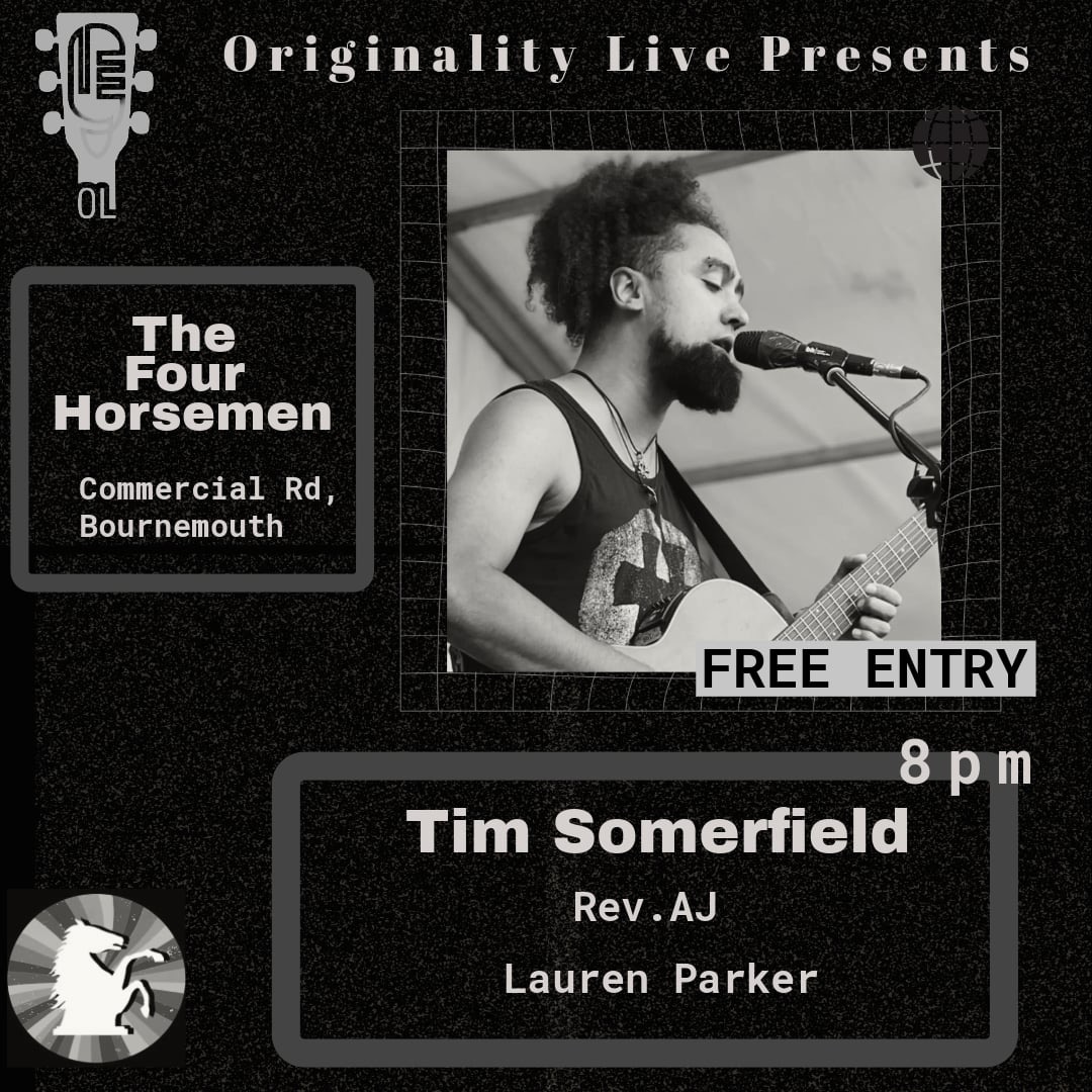 Originality Live is proud to host their original acoustic showcase at The Four HorsemenThis showcase featuresTim SomerfieldRev. AJAnd making her Four Horsemen debut Lauren ParkerCome down for a night of amazing original musicFree entry !