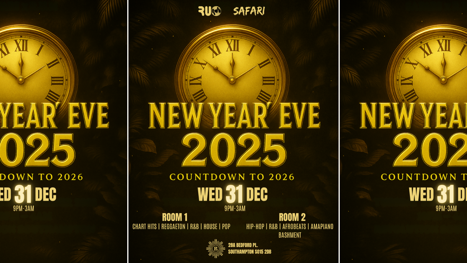 Welcome to SAFARI x R.U.M – NYE 2025, where we’re taking over Revolution Southampton with TWO ROOMSand one insane countdown.