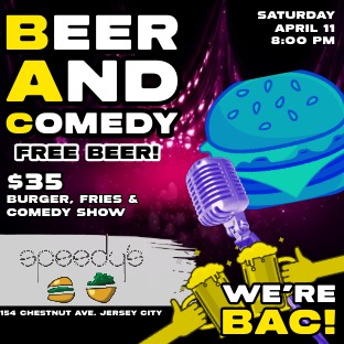 We’re BAC! The Beer & Comedy Show at Speedy's returns! .Come for the burgers and fries, stay for the laughs — and enjoy free beer while supplies last. A perfect night out for couples, singles, and comedy lovers alike.