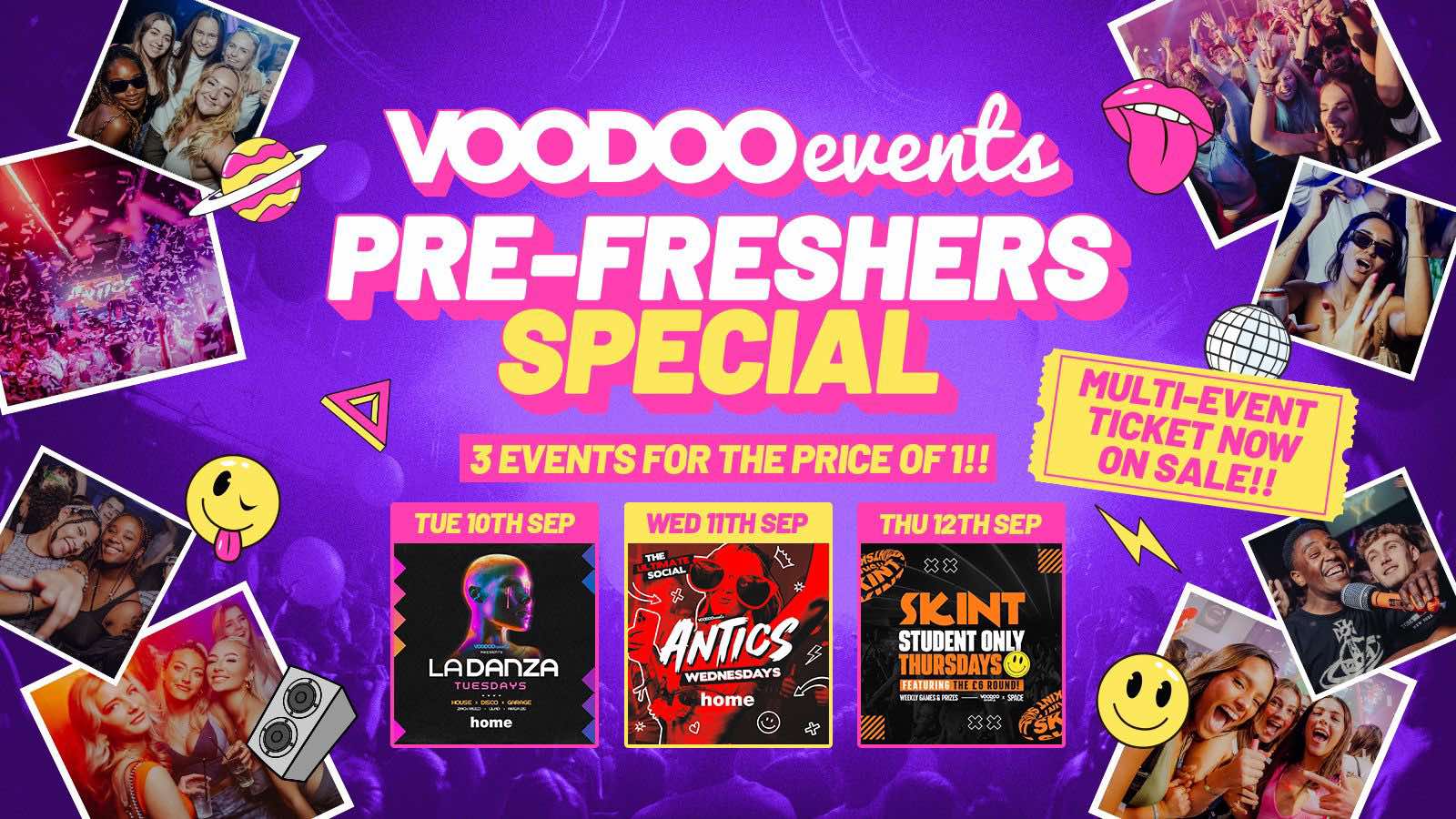 The Voodoo Events PRE FRESHERS 3 Day Pass - 3 Events for The Price Of 1!