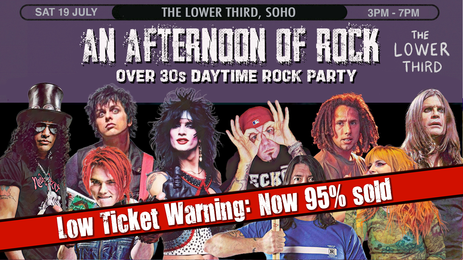 After countless sold out indie themed events, we've listened to your pleas and can officially announce that An Afternoon of ROCK is coming to The Lower Third to bring you a daytime rock and metal party for all you over 30s